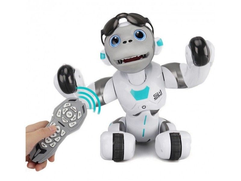 Радиоуправляемый робот-обезьяна LENENG TOYS Dog K12 - современная игрушка для детей от 6 лет. Робот-обезьяна умеет танцевать, играть, вращаться и даже стоять на голове. В темноте у обезьяны светятся глаза, поэтому она не потеряется. Ребенок может играть в ролевые игры и придумывать различные сюжеты.