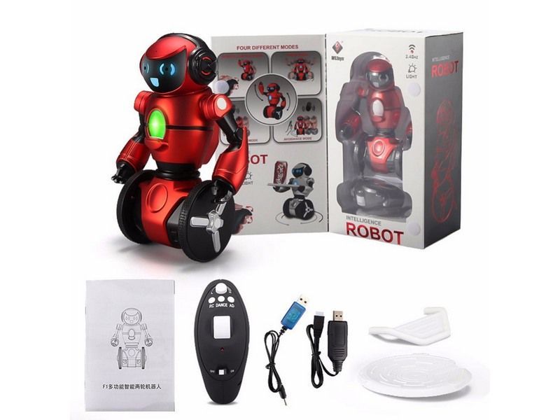 Интеллектуальный радиоуправляемый робот WLToys F1 с гиростабилизацией. Робот передвигается на двух колесах, а специальная система стабилизации прекрасно справляется с удержанием баланса. WLToys F1 хорошо ездит по ровным покрытиям, может поворачивать направо и налево, удерживая при этом груз весом 200 грамм на небольшом удобном подносе. Убедиться в том, что система стабилизации на высоте очень просто. Поставьте на поднос стакан с водой, преодолейте определенный маршрут, из стакана практически ничего не прольется. Если на пути для F1 вырастет непреодолимый барьер, робот самостоятельно найдет способ проехать в обход или избежать столкновения.