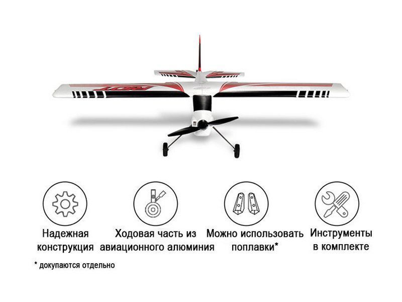 Самолет сконструирован из легкого и прочного материала EPO. Крылья и фюзеляж декорированы яркими контрастными наклейками, поэтому модель хорошо видна в воздухе даже издалека. Крепления крыла утоплены в уровень с корпусом. Фюзеляж удобен в переноске за счёт прямоугольного профиля. Мощный двухлопастной пропеллер, прочное и лёгкое шасси, большая подъёмная сила.