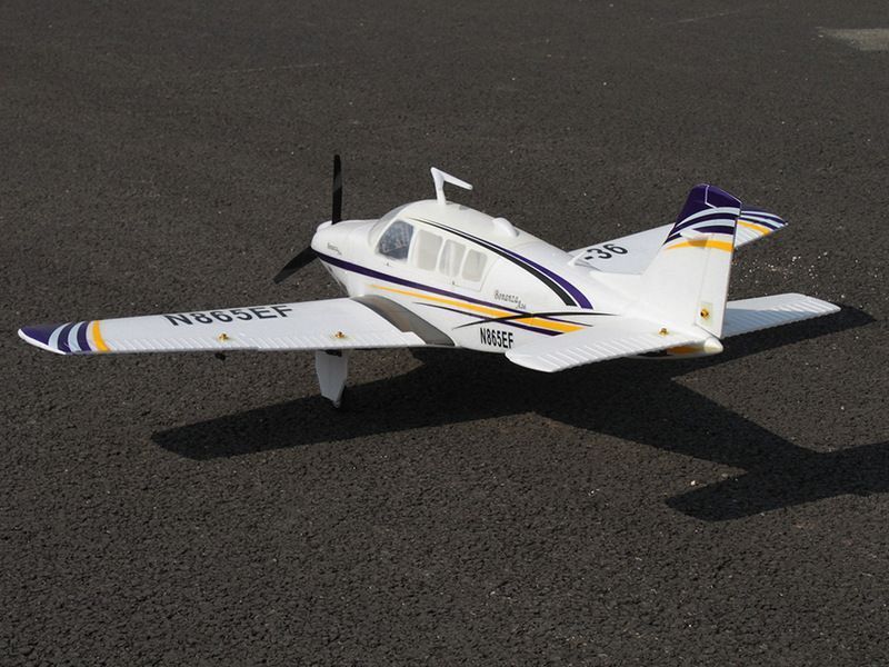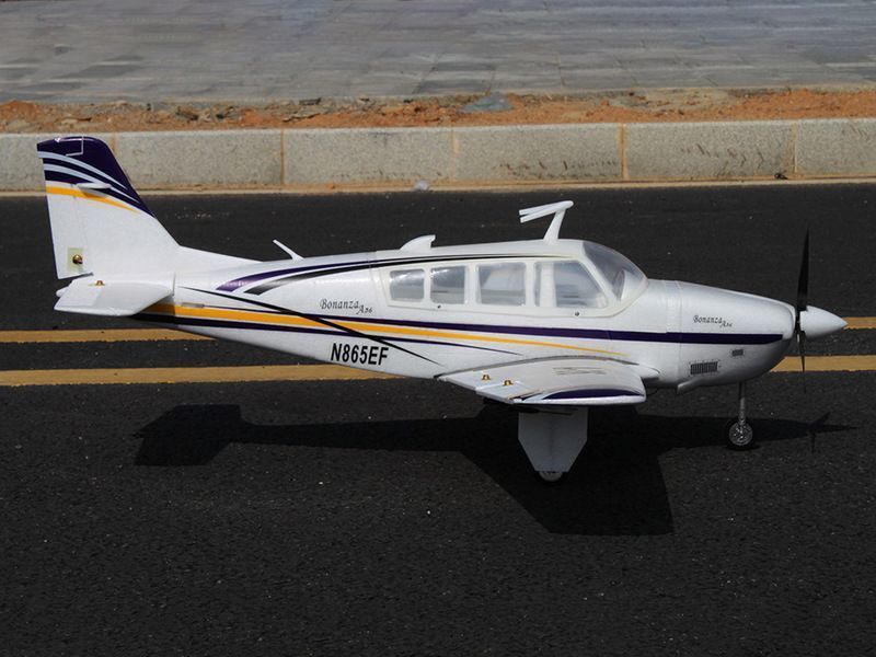 Beechcraft Bonanza A36 - одна из модификаций американского самолета с размахом крыла 1280 мм. Большой спортивный самолет с убирающимся шасси будет смотреться в небе впечатляюще. Стабильные летные характеристики и легкость в управлении позволяют управлять самолетом даже пилотам с небольшим опытом.