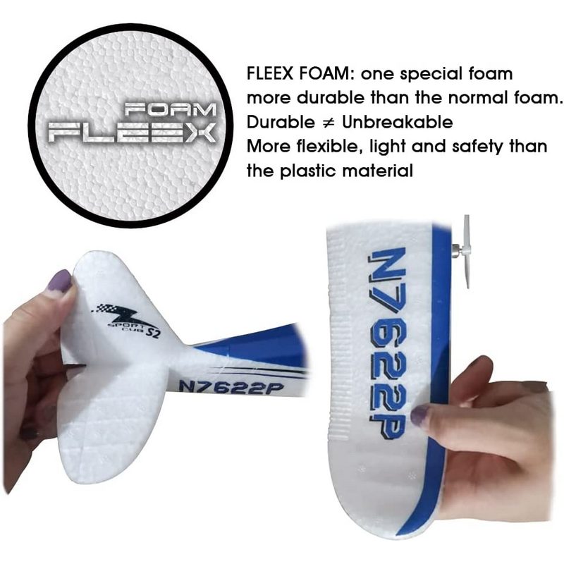 Самолет изготовлен из вспененного полипропилена EPP, что делает самолет легким, гнущимся, но не ломающимся, что обеспечивает устойчивость к повреждениям при посадке и столкновении.