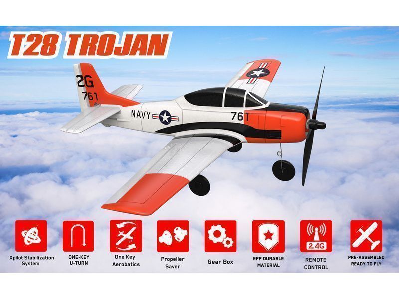 Т-28 - это радиоуправляемый боевой 4-канальный самолет, обладающий отличными спортивными характеристиками и способный выполнять фигуры высшего пилотажа. Благодаря встроенной системе гироскопического стабилизатора Xpilot с мощной моторной системой, самолет летает стабильно, ловко реагирует на управление и может выполнять фигуры высшего пилотажа даже в условиях небольшого ветра.
