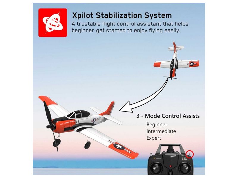 Система стабилизации XPILOT - это надежный помощник в управлении полетом, который помогает новичку легко начать получать удовольствие от полета. Он помогает летать в ветреную погоду и обеспечивает сверхустойчивый полет даже под контролем пилотов-новичков. Три уровня по управлению полетом (начальный уровень с полной поддержкой / средний с частичной поддержкой / эксперт по ручному управлению) помогают новичкам шаг за шагом научиться управлять самолетом-планером на радиоуправлении.