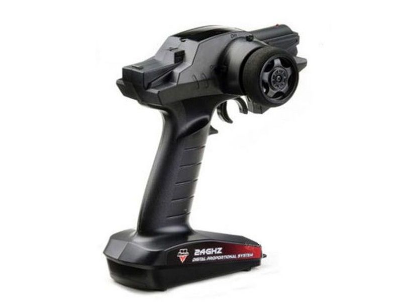 Радиоаппаратура модели представляет из себя установленный 4-х канальный приёмник и 2-х канальный передатчик, частотой 2,4ГГц. Передатчик отличается малыми габаритами и простотой. В то время как большинству систем требуется 8 элементов питания, данный обходится 4-мя. Встроенная в корпус антенна не сломается при переноске, а органы настройки удобно расположены вверху, на видном месте. Помимо привычных настроек, имеется регулировка хода рычага и переключатель мощности частоты. Зарядка аккумуляторов передатчика производится с помощью подключаемого адаптера напряжением 6В (опционно).