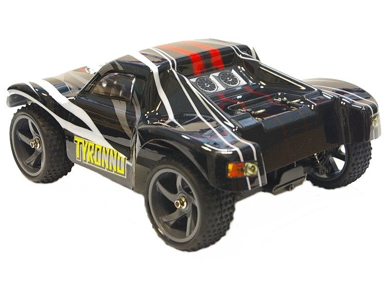 Мини шорт-корс Tyronno с виду очень напоминает лягушонка. Машина создана для того, чтобы кататься дома, во дворе, на работе и т.д. Небольшие габариты багги позволяют взять её с собой в любое место. Детали и компоненты модели унифицированы с остальными машинами 18-го масштаба, а силовой блок даже с масштабом покрупнее. Бесколлекторный мотор питается от литий-полимерной батареи и буквально рвёт модель с места. Чистый фан.