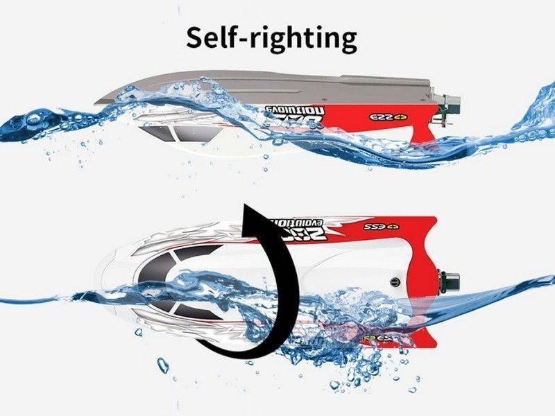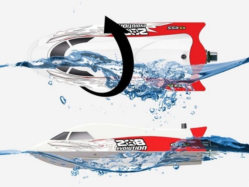 Автоматический переворот при опрокидывании. Когда катер перевернется, нажмите и удерживайте кнопку сброса в верхнем левом углу, пока судно не перевернется, затем отпустите кнопку.