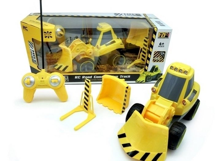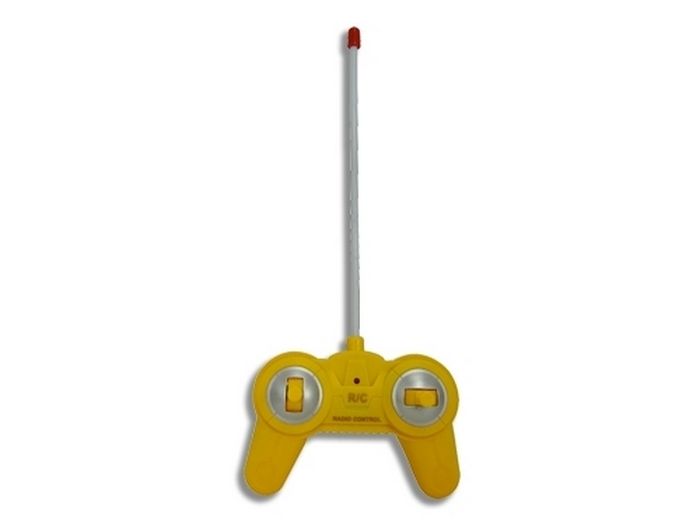 Трактор выполнен в желто-черном строительном цвете. Пульт выполнен в форме джойстика. Пульт большой и жёлтый, поэтому его сложно потерять или перепутать с другим пультом ДУ. Полный контроль управления позволяет игрушке двигаться вперед/назад, влево/вправо, совершать повороты и остановки.
