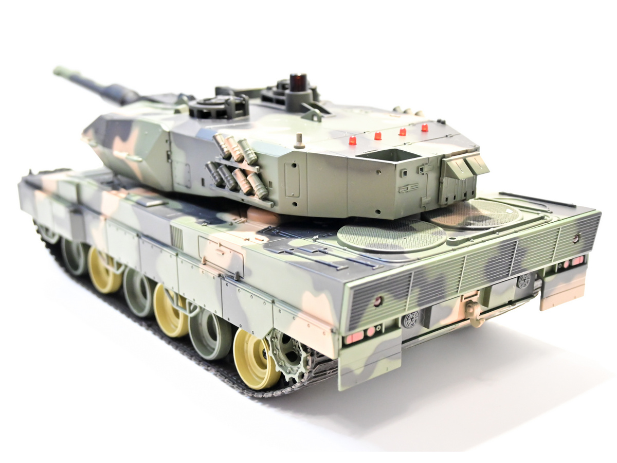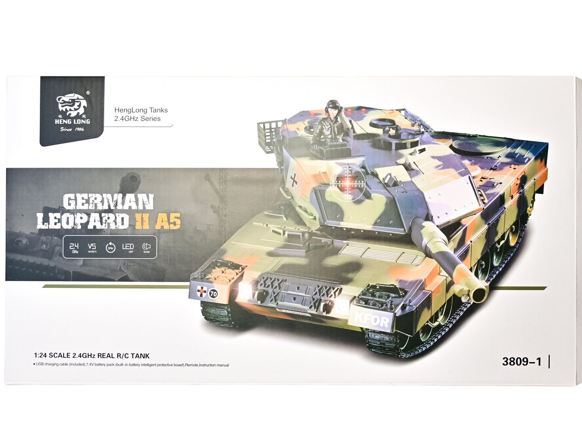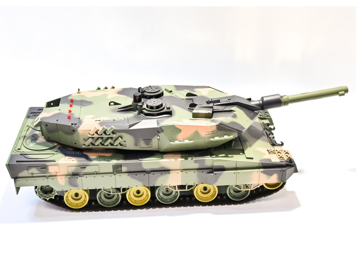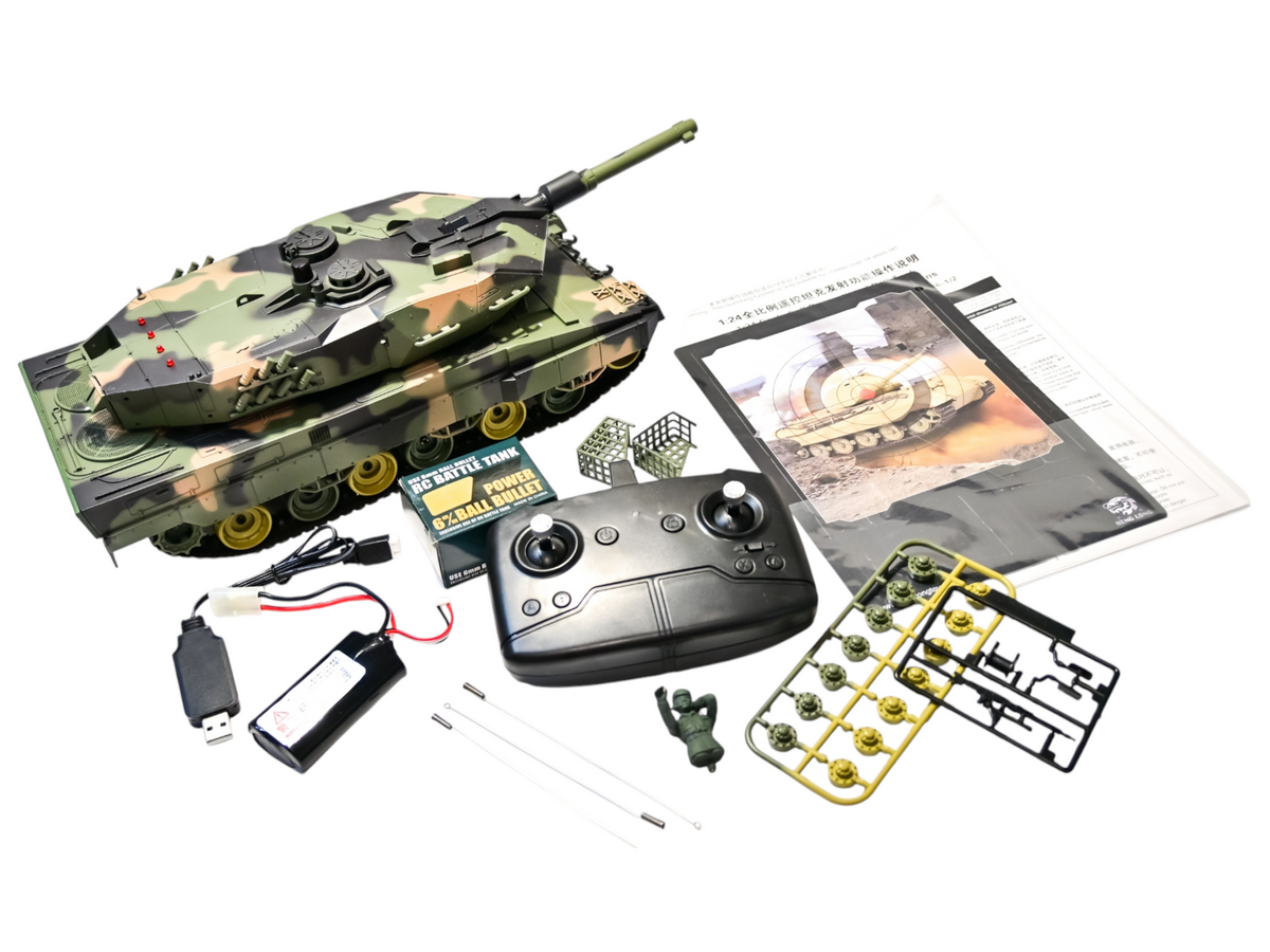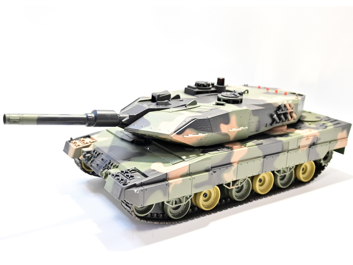 Радиоуправляемый танк Leopard A5 1:24 обладает высокой детализацией и высоким техническим оснащением, выполняет все функции настоящего танка. Полноценное управление: движение вперед/назад, движение влево/вправо. Башня танка вращается на 320°, ствол поднимается и опускается на 20°.