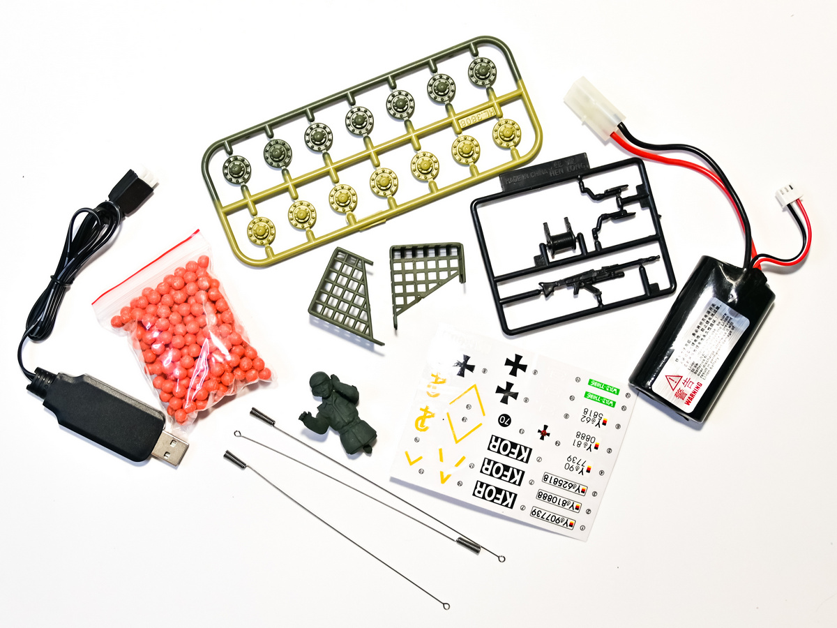 Специальная технология «Hop Up», закручивающая шарик во время выстрела, позволяет достаточно точно поражать цели на расстоянии до 25 метров. Боезапас танка: 40 шариков.