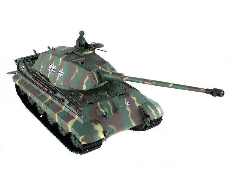 Радиоуправляемый танк German King Tiger Porsche Turret (Королевский тигр с башней типа Porsche) изготовлен в точном соответствии с известным немецким тяжелым танком, имеет прекрасно детализированный корпус с множеством дополнительных навесных аксессуаров.