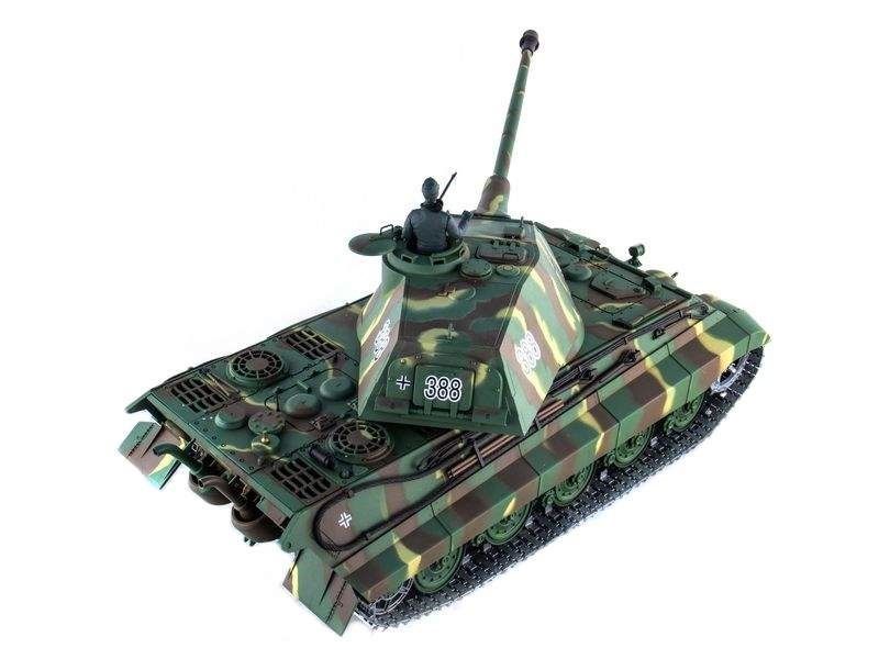 Радиоуправляемый танк German King Tiger Porsche Turret (Королевский тигр с башней типа Porsche) изготовлен в точном соответствии с известным немецким тяжелым танком, имеет прекрасно детализированный корпус с множеством дополнительных навесных аксессуаров.