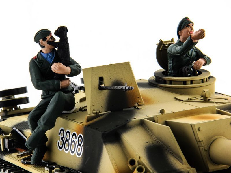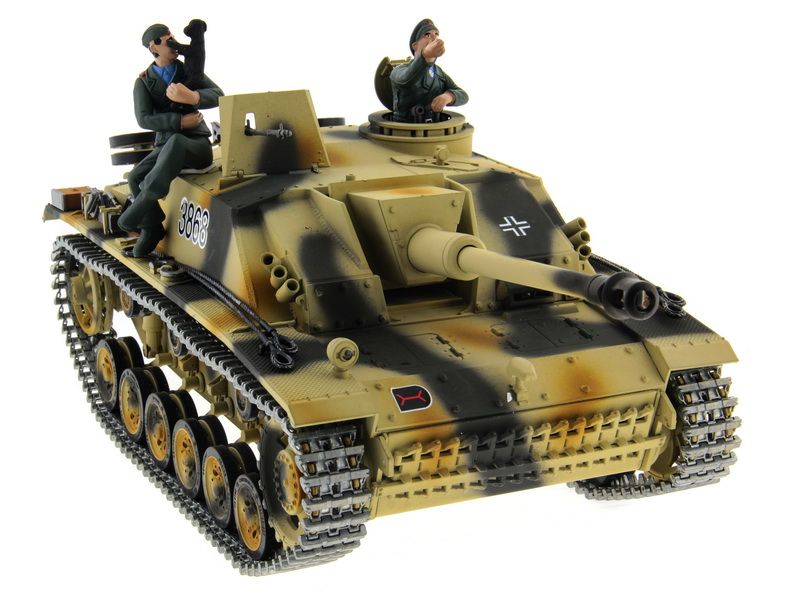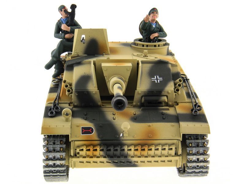 Радиоуправляемая модель штурмового орудия Sturmgeschutz III в масштабе 1:16 от компании Taigen - это полностью функциональная модель, имеющая высокий уровень детализации и металлические компоненты. Наиболее заметным является фантастическая ручная роспись корпуса, что делает каждую модель оригинальной.