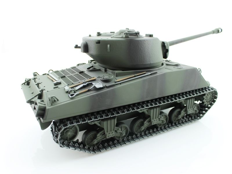 Радиоуправляемый танк Torro Sherman M4A3 с большой башней, оснащённой 76 мм пушкой, в масштабе 1:16 с пневматической пушкой, дымовыми и звуковыми эффектами - полностью функциональная модель, имеющая высокий уровень детализации и металлические компоненты.