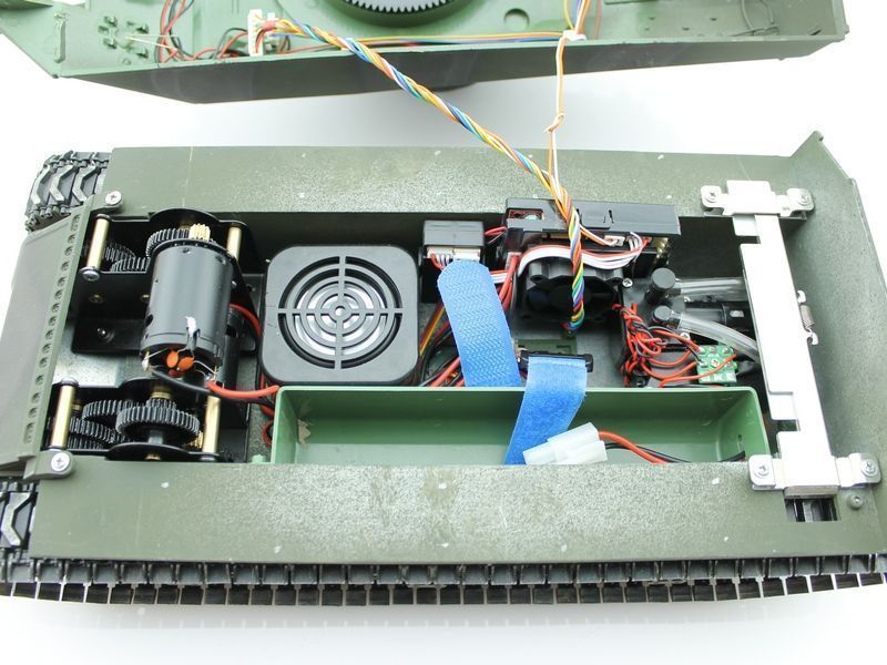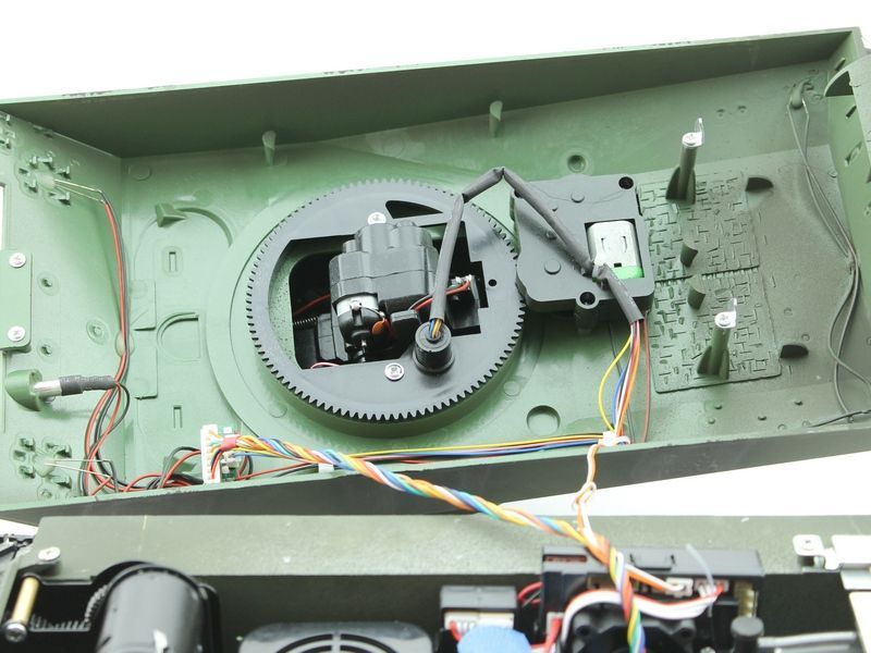Модель полностью готова к работе, филигранно раскрашена и имеет все необходимые аксессуары для эксплуатации. Выхлопные трубы оборудованы дым - системой, движение модели сопровождается звуковой имитацией работы двигателя! На модели светятся фары, и вращается башня влево/вправо в секторе 360°, ствол откланяется вверх/вниз. При выстреле имитируется «отдача» и звук орудия, а работающая подвеска катков, лязг гусениц заставляют поверить в реальность происходящего!