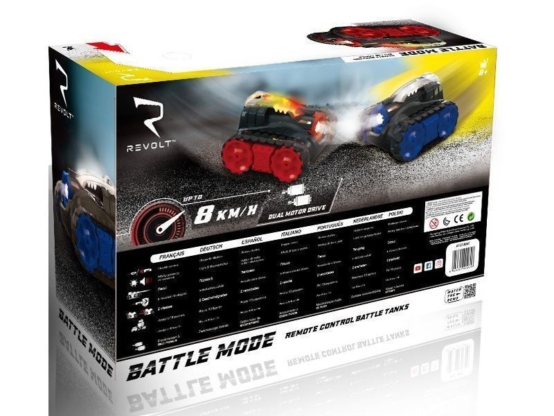 Радиоуправляемый танковый бой Revolt TG1004T с потрясающими световыми, звуковыми и динамическими эффектами при стрельбе и попадании. Цель игры - выстрелить в противника и нанести 5 очков урона для победы. Играть могут до 10 игроков: «каждый сам за себя» или в командах.