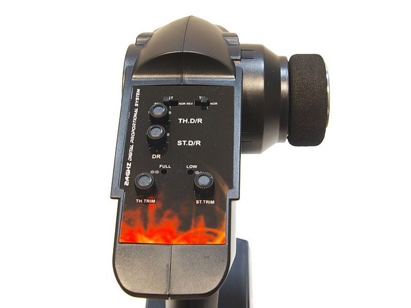 Радиоаппаратура модели представляет из себя установленный 4-х канальный приёмник и 2-х канальный передатчик, частотой 2,4ГГц. Передатчик отличается малыми габаритами и простотой. В то время как большинству систем требуется 8 элементов питания, данный обходится 4-мя. Встроенная в корпус антенна не сломается при переноске, а органы настройки удобно расположены вверху, на видном месте. Помимо привычных настроек, имеется регулировка хода рычага и переключатель мощности частоты. Зарядка аккумуляторов передатчика производится с помощью подключаемого адаптера напряжением 6В (опционно).