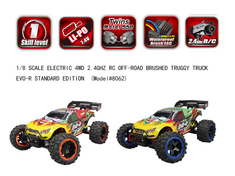 Радиоуправляемый трагги Remo Hobby EVO-R TWINS MOTOR (зеленая) 4WD 2.4G 1/8 RTR