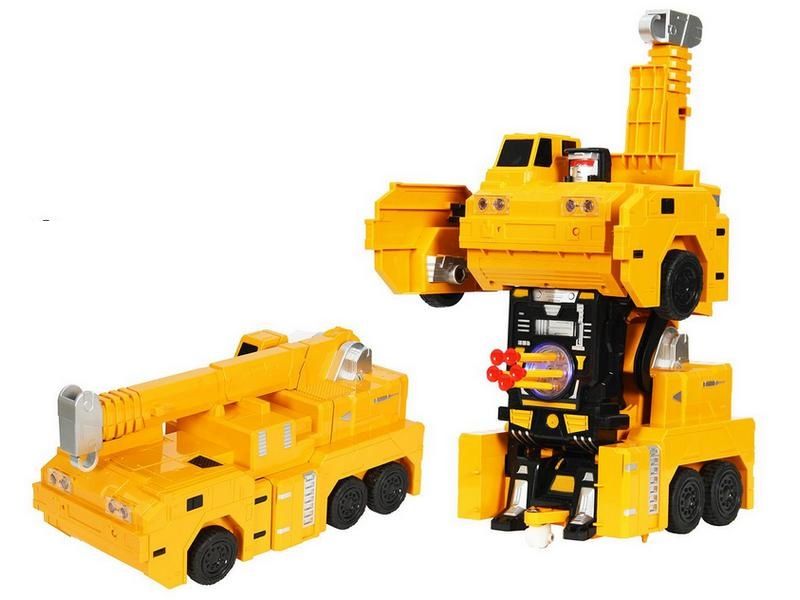 Радиоуправляемый автокран и робот одновременно, трансформер со звуковыми и световыми эффектами. Робот может трансформироваться в автокран и обратно по команде пульта управления. Модель стреляет присосками. Радиоуправляемый трансформер – яркая и интересная игрушка, которая безусловно очень понравится как ребёнку, так и взрослому!
