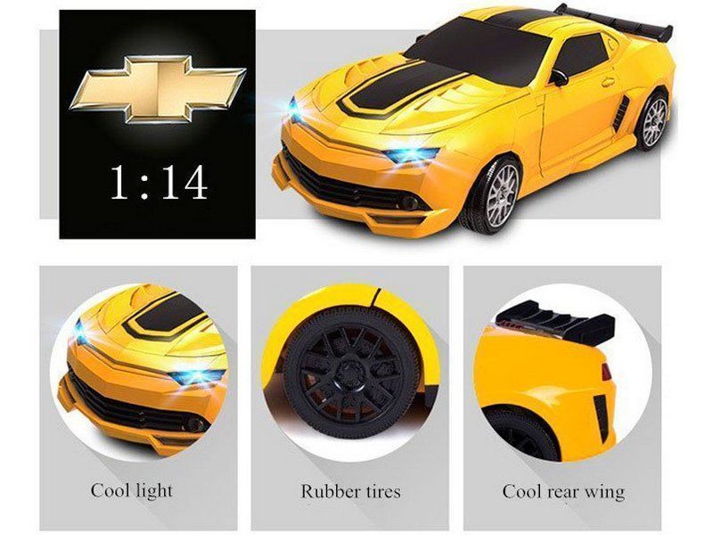 Робот-трансформер с функцией радиоуправления и функцией трансформации в автомобиль либо в робота Bumblebee при нажатии специальной кнопки на пульте радиоуправления, выполненный в масштабе 1:14.