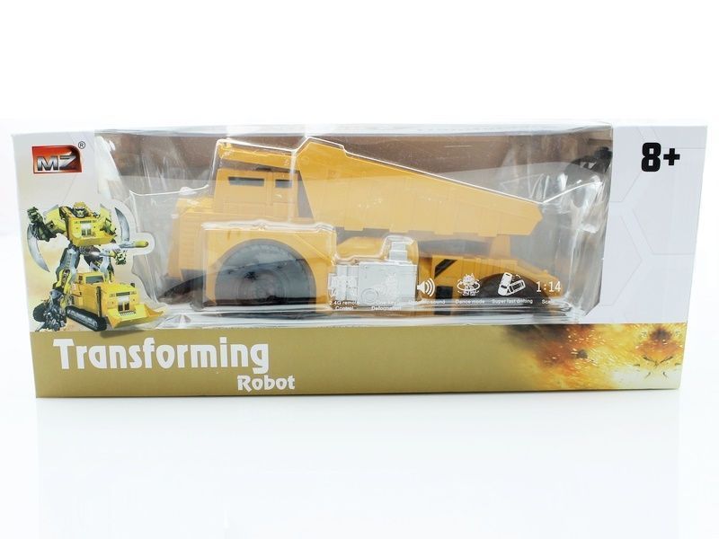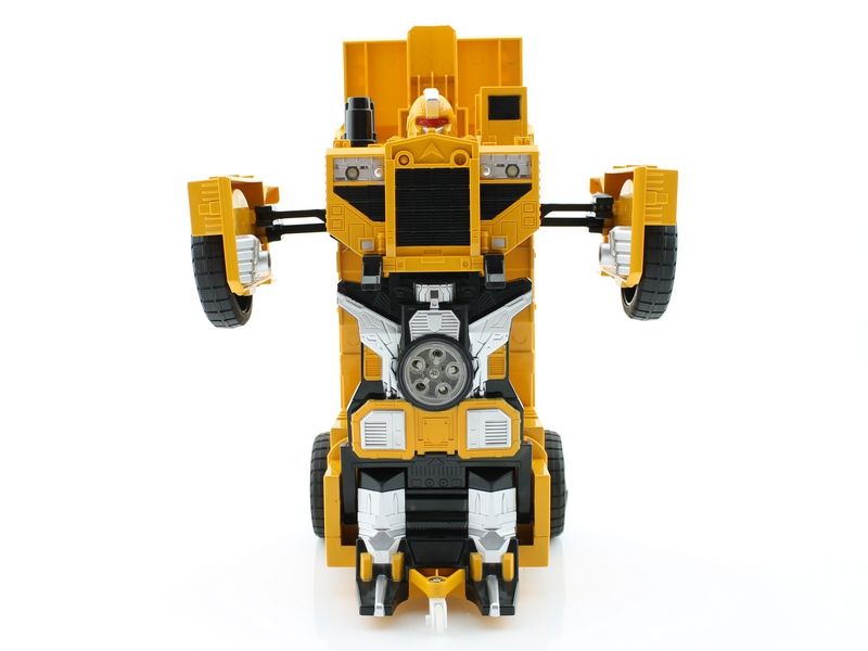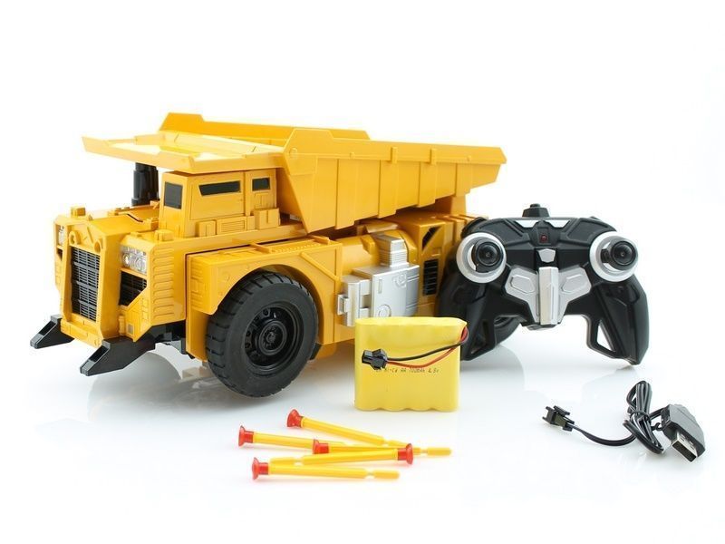 Радиоуправляемый трансформер - самосвал, стреляющий присосками - это радиоуправляемый самосвал и робот одновременно, оснащенные звуковыми и световыми эффектами, также модель может стрелять ракетами-присосками и имеет демо режим всех функций. Данный трансформер выглядит как настоящий самосвал (Белаз) с высокой детализацией кузова. Робот может трансформироваться в самосвал и обратно прям с пульта управления. Игрушечная модель радиоуправляемого трансформера, яркая и интересная игрушка, которая безусловно очень понравится ребенку и взрослому!