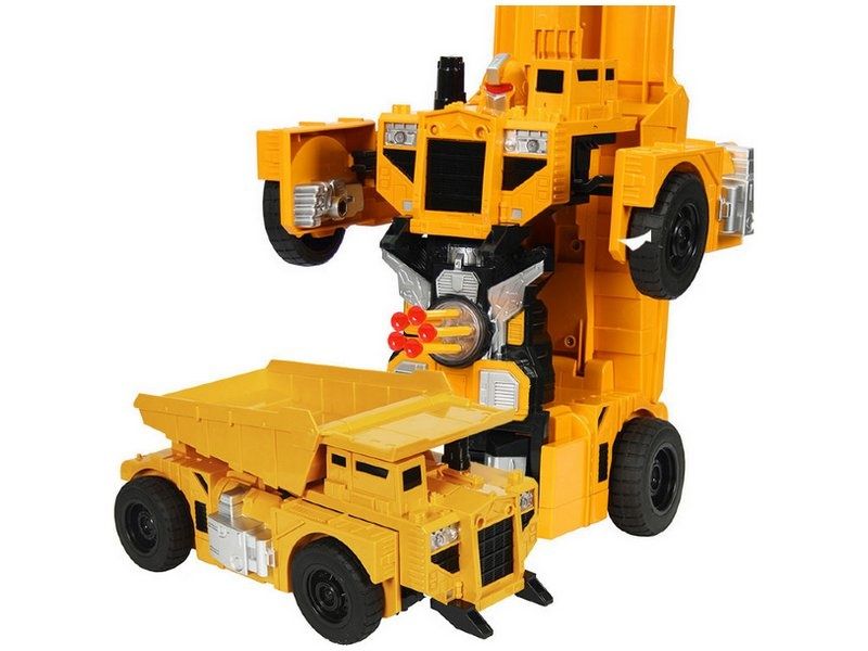 Радиоуправляемый трансформер - самосвал, стреляющий присосками - это радиоуправляемый самосвал и робот одновременно, оснащенные звуковыми и световыми эффектами, также модель может стрелять ракетами-присосками и имеет демо режим всех функций. Данный трансформер выглядит как настоящий самосвал (Белаз) с высокой детализацией кузова. Робот может трансформироваться в самосвал и обратно прям с пульта управления. Игрушечная модель радиоуправляемого трансформера, яркая и интересная игрушка, которая безусловно очень понравится ребенку и взрослому!
