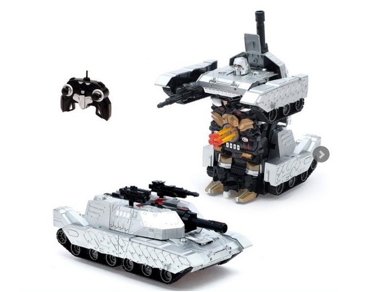 Для того, чтобы танк превратился в робота и наоборот, достаточно нажать одну кнопку на пульте. Робот стреляет присосками, нажатием кнопки пульта. Игрушечная модель радиоуправляемого трансформера, яркая и интересная игрушка, которая безусловно очень понравится ребенку и взрослому!