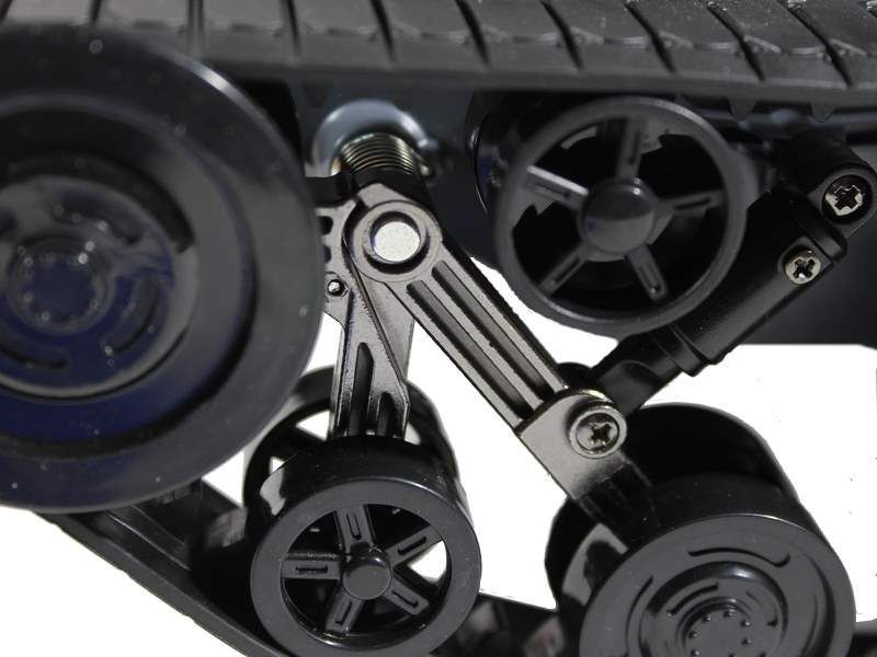 Высокоскоростная модель Military Police на гусеничном ходу способна покорять препятствия как настоящий вездеход. Угол подъем составляет 30 градусов. Торсионная подвеска обеспечивает превосходные ходовые качества. Механизм крепления переднего колеса служит для натяжения гусениц, в результате чего вездеход способен уверенно передвигаться по любой поверхности. Military Police не страшны небольшие ямы (даже до 10 см), он без проблем проезжает их, не проваливаясь.