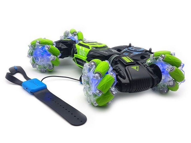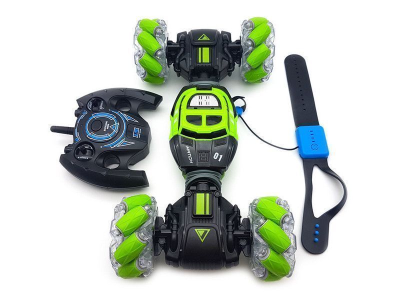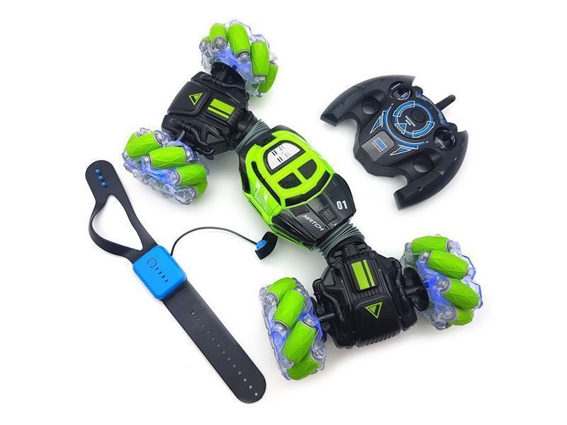 Радиоуправляемый внедорожник Твистер (часы + пульт) 1:16 - UD2196A-GREEN - это машинка перевертыш Hyper Skidding, которая является несомненным хитом продаж среди радиоуправляемых моделей. Обновленная версия стала еще лучше. О такой машинке мечтает каждый мальчик. Возможности машинки Hyper Skidding просто невероятны. Она может ездить, крутиться на месте, переворачиваться и ехать дальше, приподниматься и даже танцевать. Но главная особенность заключается в управлении. Данной машинкой можно управлять жестами при помощи специального браслета, который входит в комплект с машинкой Hyper Skidding. Увлекательный процесс управления понравится не только детям, но и взрослым. И все это будет сопровождаться звуками работающего мотора, яркой подсветкой колес и песнями. Особенно эффектно машинка смотрится в темноте.