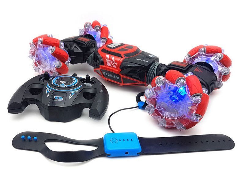 Радиоуправляемый внедорожник Твистер (часы + пульт) 1:16 - UD2196A-RED - это машинка перевертыш Hyper Skidding, которая является несомненным хитом продаж среди радиоуправляемых моделей. Обновленная версия стала еще лучше. О такой машинке мечтает каждый мальчик. Возможности машинки Hyper Skidding просто невероятны. Она может ездить, крутиться на месте, переворачиваться и ехать дальше, приподниматься и даже танцевать. Но главная особенность заключается в управлении. Данной машинкой можно управлять жестами при помощи специального браслета, который входит в комплект с машинкой Hyper Skidding. Увлекательный процесс управления понравится не только детям, но и взрослым. И все это будет сопровождаться звуками работающего мотора, яркой подсветкой колес и песнями. Особенно эффектно машинка смотрится в темноте.