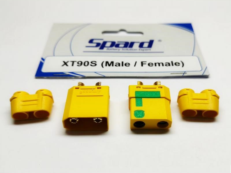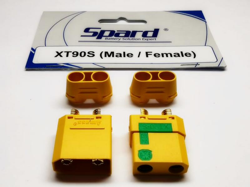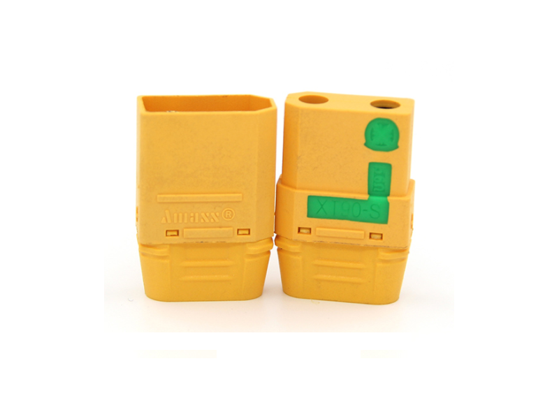Разъем ХT90 сделан из высокотемпературного нейлона с позолоченными пружинными контактами, которые были установлены в пресс-форму в момент литья и формирования разъема. Позолота - несомненный плюс с точки зрения защиты от окисления контактов. Обе детали и корпус формуются одновременно. ХT90 гарантирует прочное высокоамперное соединение для токов до 90A. У разъемов ХТ90 большая площадь контакта, это значит меньшее сопротивление и, соответственно, большие токи без нагрева в месте соединения.