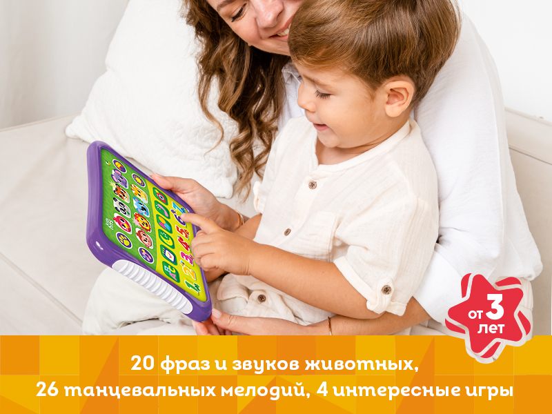 Погружаясь в игру, малыши могут нажимать на яркие картинки, слушая забавные звуки и мелодии. Хит Пэд предлагает 20 фраз и звуков, а также 26 танцевальных мелодий, которые увлекут их вниманием и сделают обучение увлекательным процессом. Четыре интересные игры способствуют развитию познавательных способностей и музыкальных навыков.