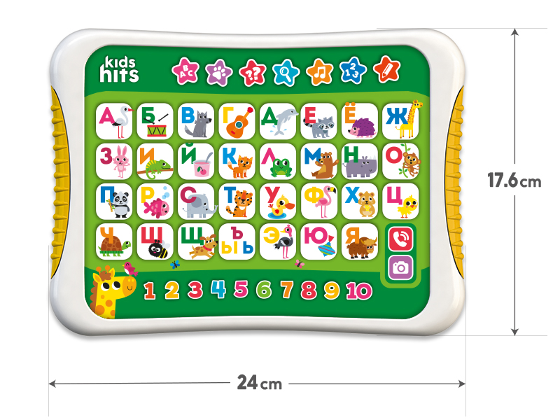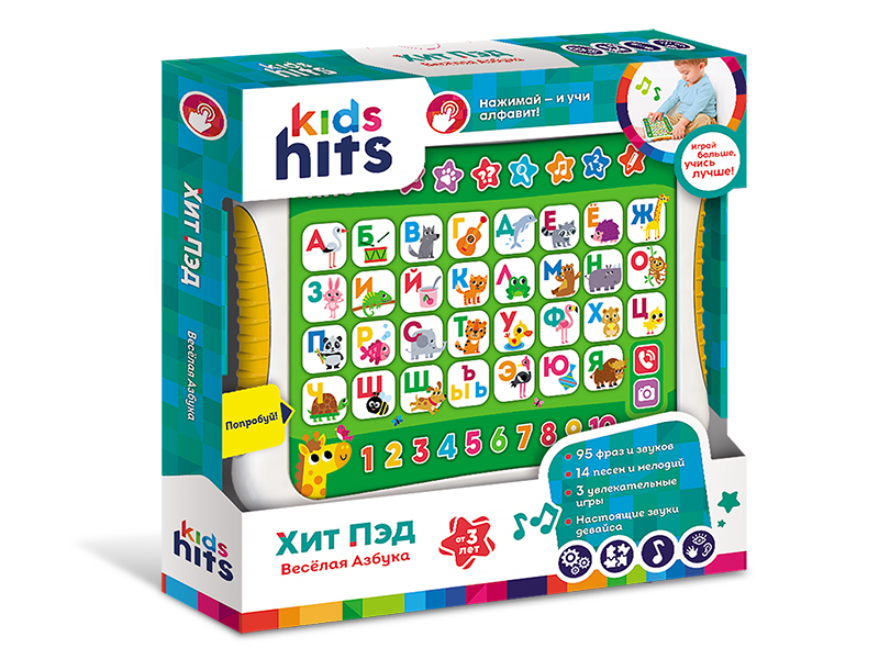 Развивающая игрушка Kids Hits Хит Пэд "Веселая азбука" — это идеальное решение для детей от 3 лет, желающих весело и увлекательно изучать мир вокруг. С помощью 95 фраз и звуков, а также 14 песен и мелодий, ваш ребенок погрузится в захватывающий процесс обучения. В трех увлекательных играх он сможет изучать алфавит, счет, цвета и животных, развивая познавательные способности и логическое мышление.