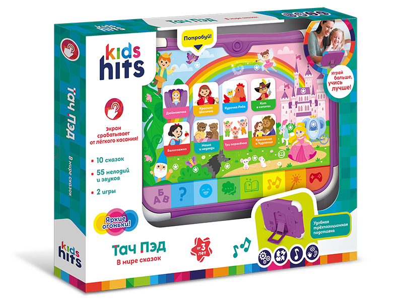 В результате, Kids Hits Тач Пэд "В мире сказок" - это не просто игрушка, а настоящий проводник в мир знаний и развлечений, который развивает познавательные способности и способствует сенсорному восприятию вашего ребенка.