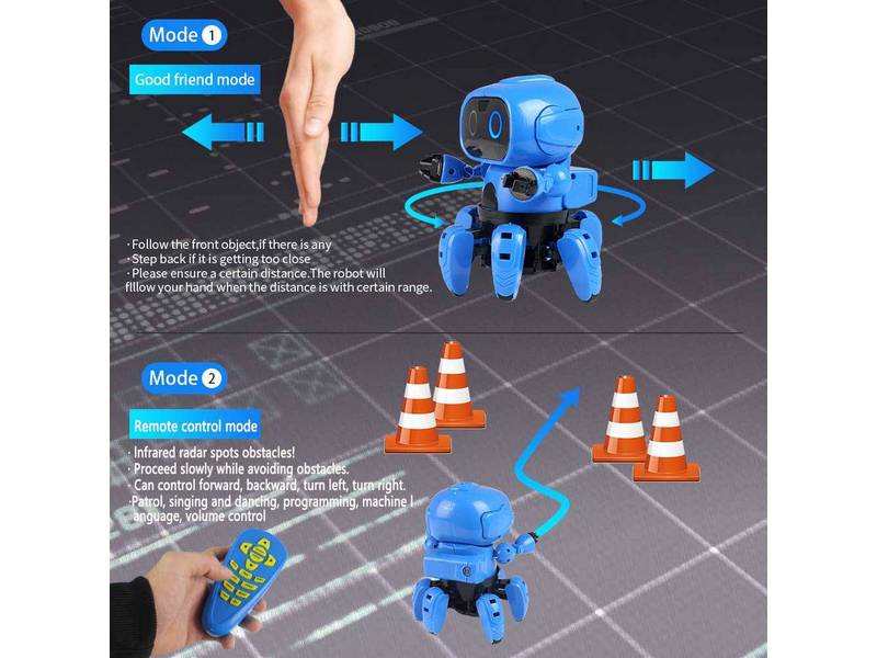 Робот-осьминог обладает большим количеством функций (патрулирование, танец, песня, стрельба и т.д.). Кроме того, робот способен обходить препятствия. Для перемещения использует 6 подвижных лапок. Робот может управляться как при помощи пульта, так и жестами. Звуковое (русская озвучка) и световое сопровождение дополнят игру разнообразием и интересом.