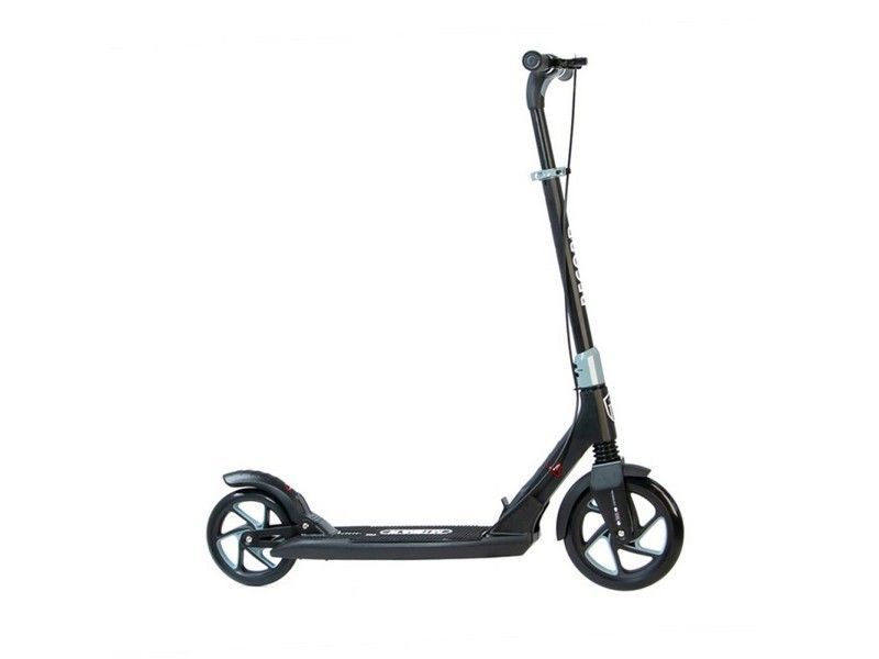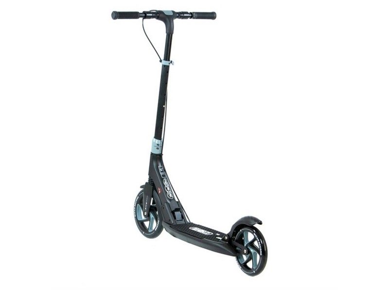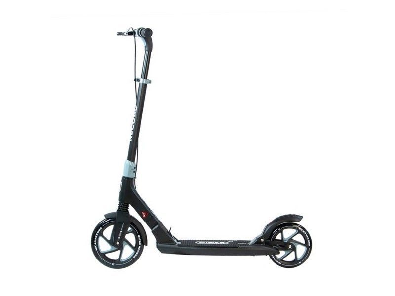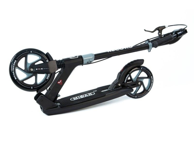 Самокат Record - это настоящий городской монстр. Преимуществом данной модели является инновационная система складывания ручек и фрезерованная рулевая стойка. Широкая платформа для ног оснащена нескользящим резиновым покрытием.