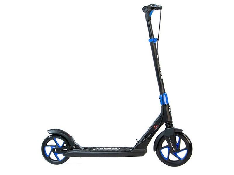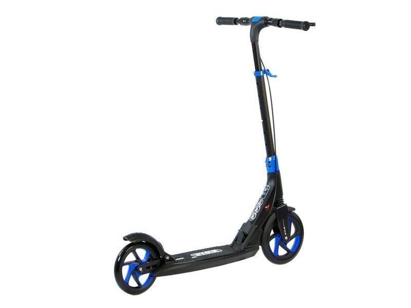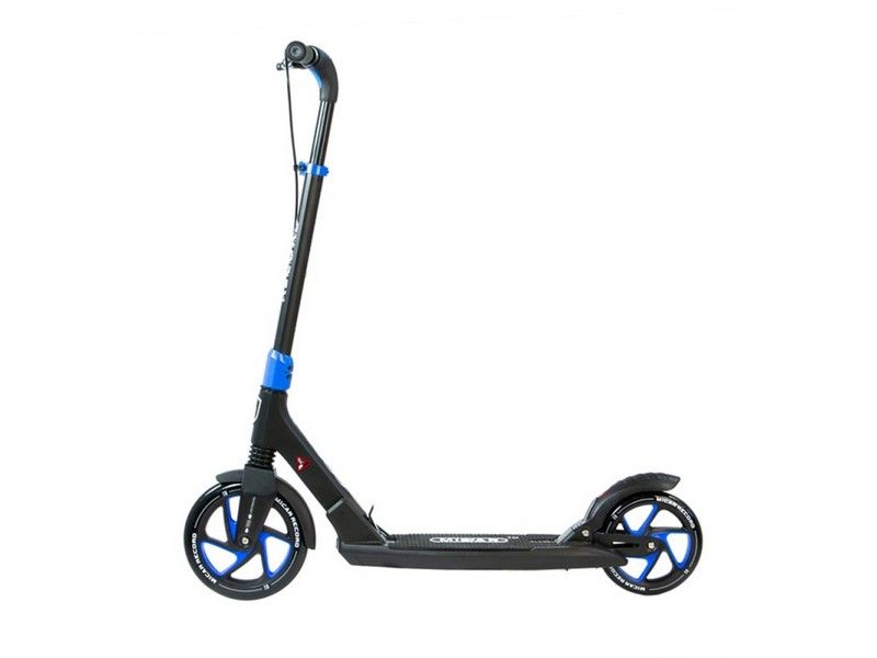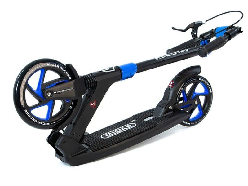 Самокат Record - это настоящий городской монстр. Преимуществом данной модели является инновационная система складывания ручек и фрезерованная рулевая стойка. Широкая платформа для ног оснащена нескользящим резиновым покрытием.