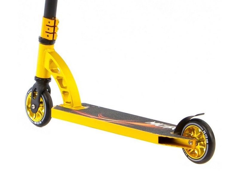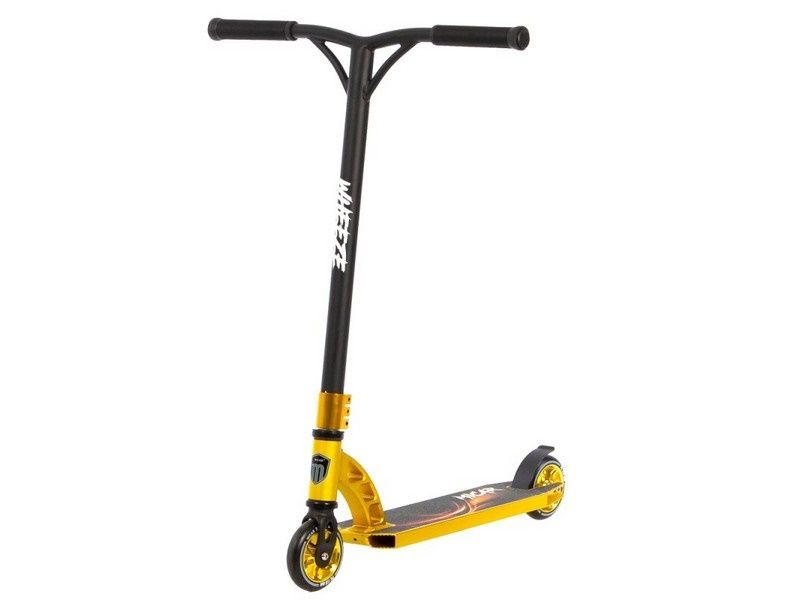 Трюковой самокат Wheeze подойдет для детей от 7-8 лет. Трюковой самокат для начинающих, способный познакомить ребенка с базовыми трюками экстремального катания. Самокат с надёжной системой крепления HIC на 3-х болтах. Колеса размером в 110 мм, полиуретановые с алюминиевыми дисками с 5-ю сдвоенными спицами, отличным подшипником ABEC 9. Плюс ко всему этому усиленный руль обладает Y-образной формой, что позволяет делать любые финты. Доступен в четырёх цветах.