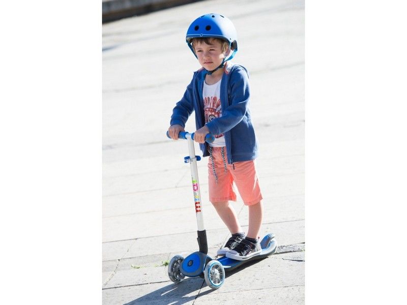 Складной самокат Scooter Maxi Cosmo с светящимися колёсами и светящейся платформой одна из наиболее популярных моделей для детей от 2-х до 8-ми лет (минимальный рост ребёнка от 95 см) Его уникальный дизайн и светящиеся платформа и колёса не оставят без внимания как детей, так и взрослых. Платформа самоката – низкая и изогнутая для более легкого и длительного катания. Имеет большую устойчивость и помогает ребенку долгое время не уставать и ездить на самокате на более длинные дистанции.