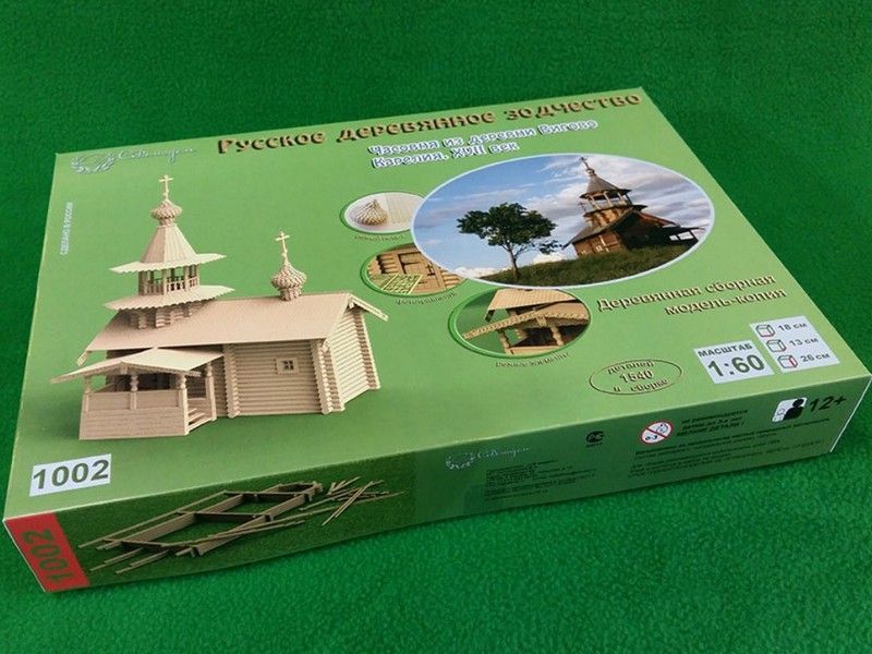 Набор для постройки деревянной модели Часовни из деревни Вигово - точная копия той, что стоит сейчас на острове Кижи.