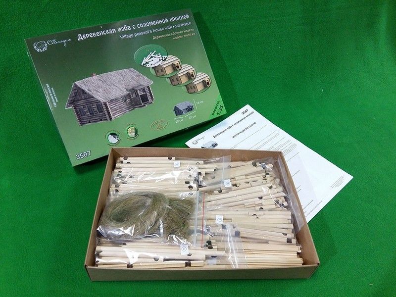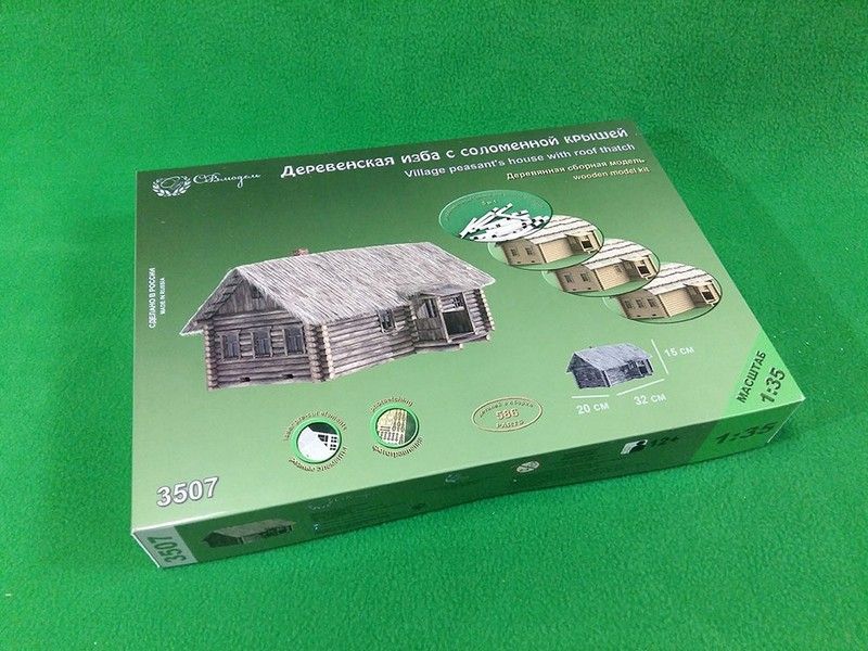 Сборная деревянная модель СВМодель. Деревенская изба с соломенной крышей, 586 деталей, 1/35