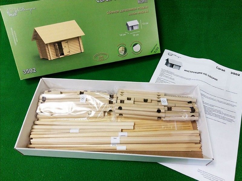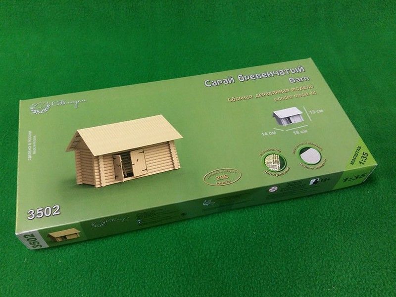 Сборная деревянная модель СВМодель. Сарай бревенчатый, 296 деталей, 1/35