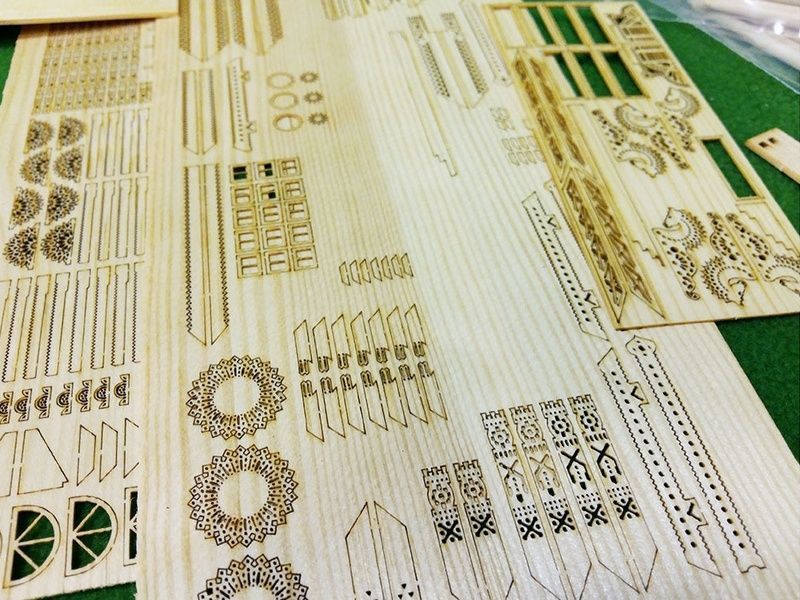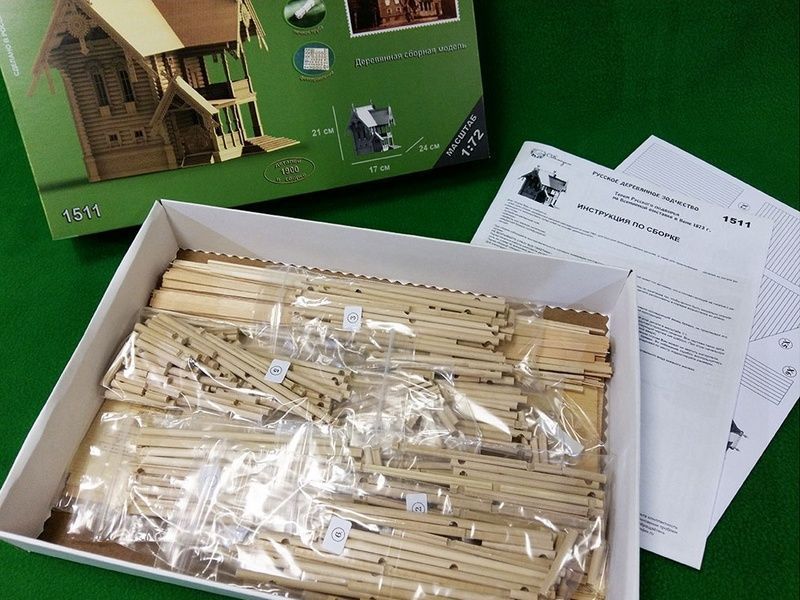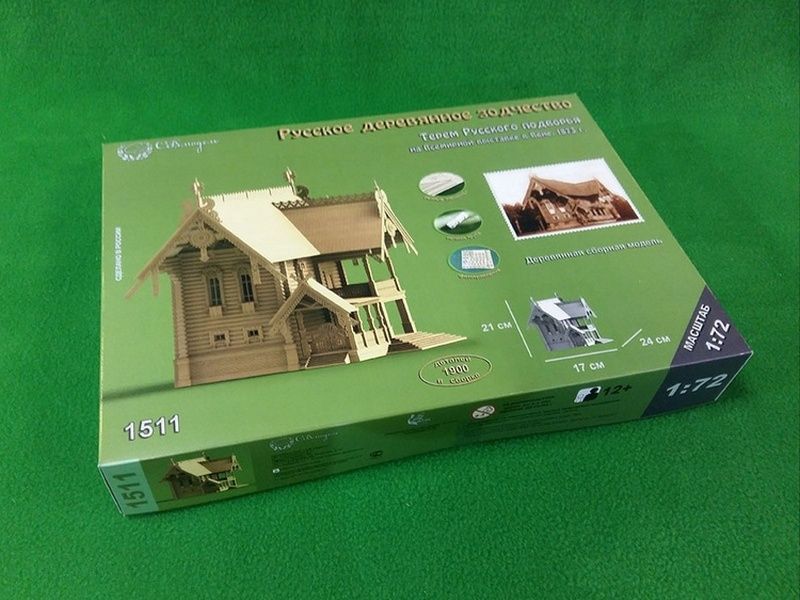 В данном наборе все необходимые детали для сборки настоящего Русского терема, построенного по проекту архитектора Гартмана к всемирной выставке в Вене: бревна с уже пропиленными пазами, рейки для настила полов и устройства крыш, печную трубу из гипса, которая выглядит настолько реалистично, как если была бы сделана из настоящего кирпича, и многие другие уже готовые детали. Все двери в тереме - открывающиеся, на миниатюрных петлях из фототравления. Их можно открыть и заглянуть внутрь. Внутри терема - две лестницы с резными перилами - на первый и второй этажи. Как и все наши модели, представленный терем собирается так же, как и настоящий дом - с настилкой лаг под пол, стропильной системой крыш и другими элементами, без которых невозможно строительство дома. Таким образом, собирая терем в миниатюре, Вы получите полное представление о том, как строится настоящий дом.