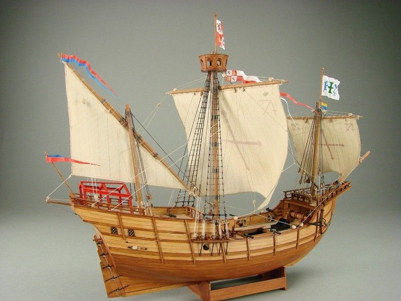 Завершает набор флаги, отпечатанные на полотняной бумаге и подставка. Модель каравеллы Pinta относится к высокому уровню сложности, если вы покупаете ее для детей среднего школьного возраста, то ребенок не сможет ее сделать до конца. Но при этом всё равно, при сборке модели он освоит геометрию, черчение, некоторые области физики, не говоря уже об усидчивости и трудолюбии.