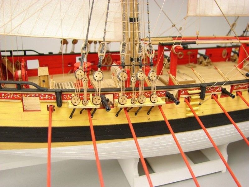 На сборочных листах даны понятные, информативные схемы сборки бумажной модели, включая проводку такелажа. Там же есть чертежи всех рангоутных деревьев (мачт, рей) и выкройки парусов.