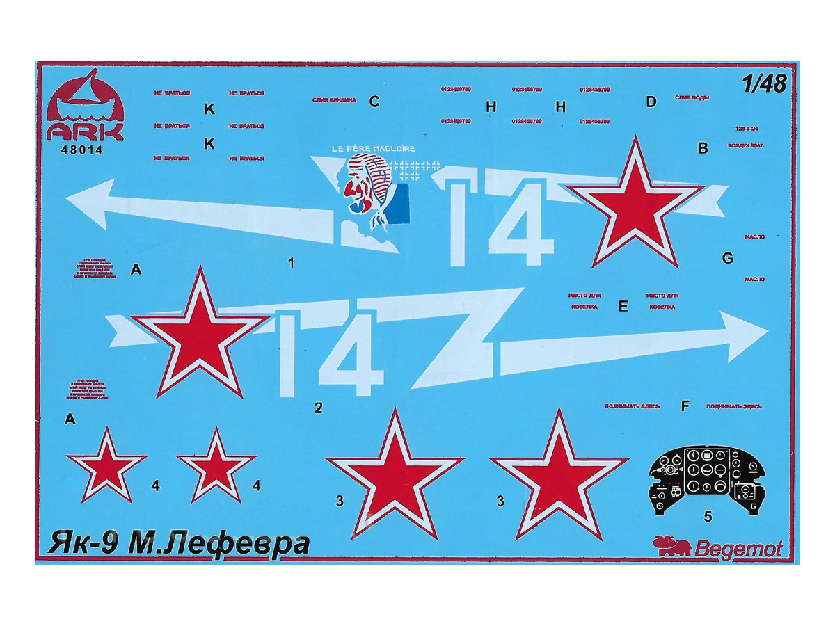 Сборная модель ARK 48014(f) Истребитель Як-9 Марселя Лефевра, 1/48