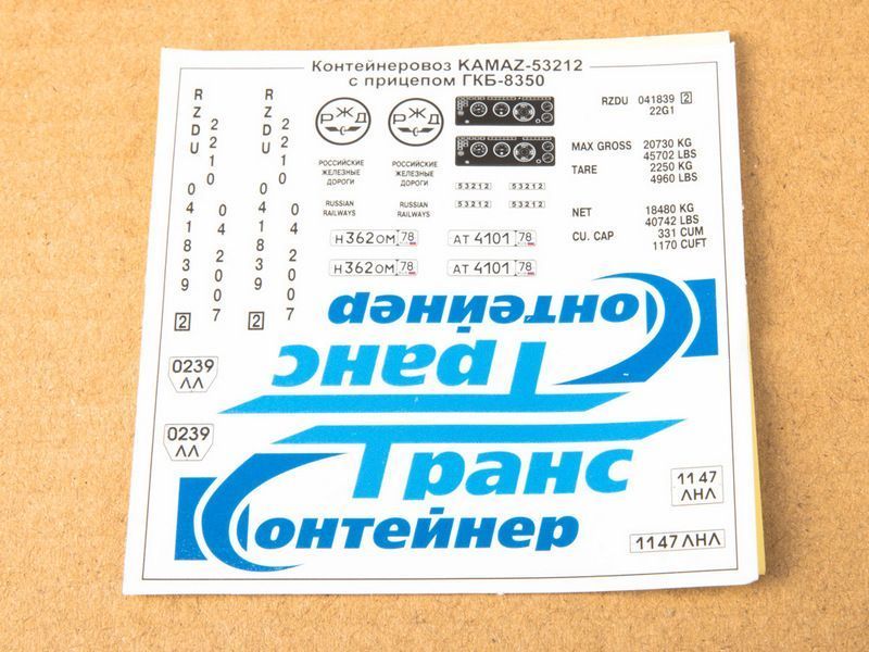 Сборная модель AVD КАМАЗ-53212 контейнеровоз с прицепом ГКБ-8350, 1/43