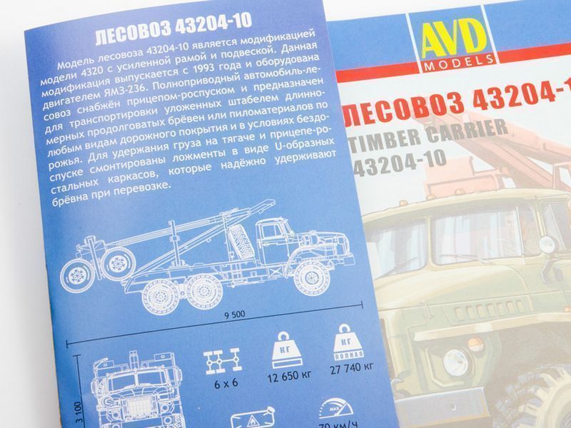 комплект деталей для сборки модели лесовоза с прицепом-роспуском УРАЛ-43204-10