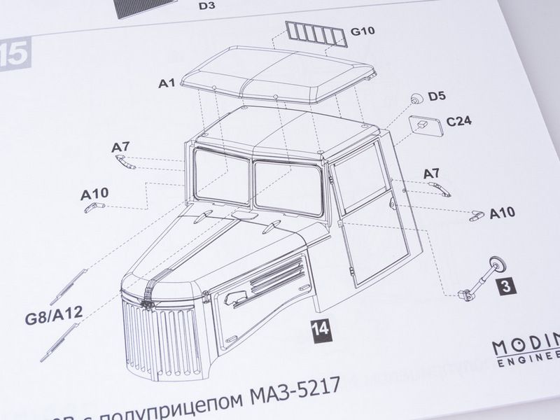 комплект деталей для сборки модели МАЗ-200В с полуприцепом МАЗ-5217
