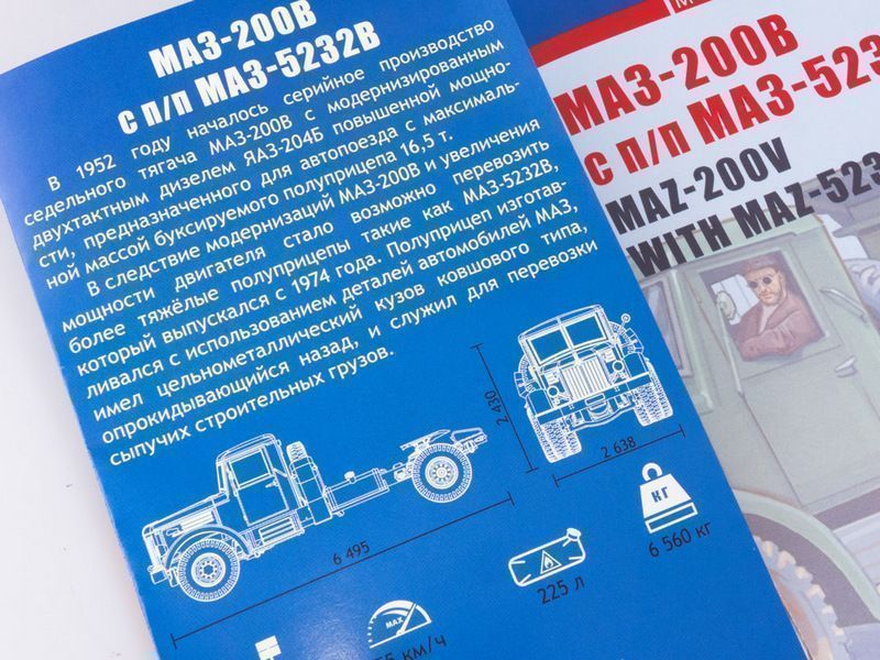 Сборная модель AVD МАЗ-200В с полуприцепом МАЗ-5232В, 1/43