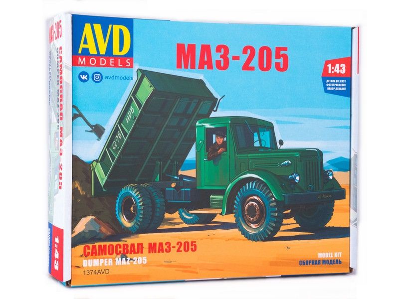 Сборная модель AVD МАЗ-205 самосвал, 1/43